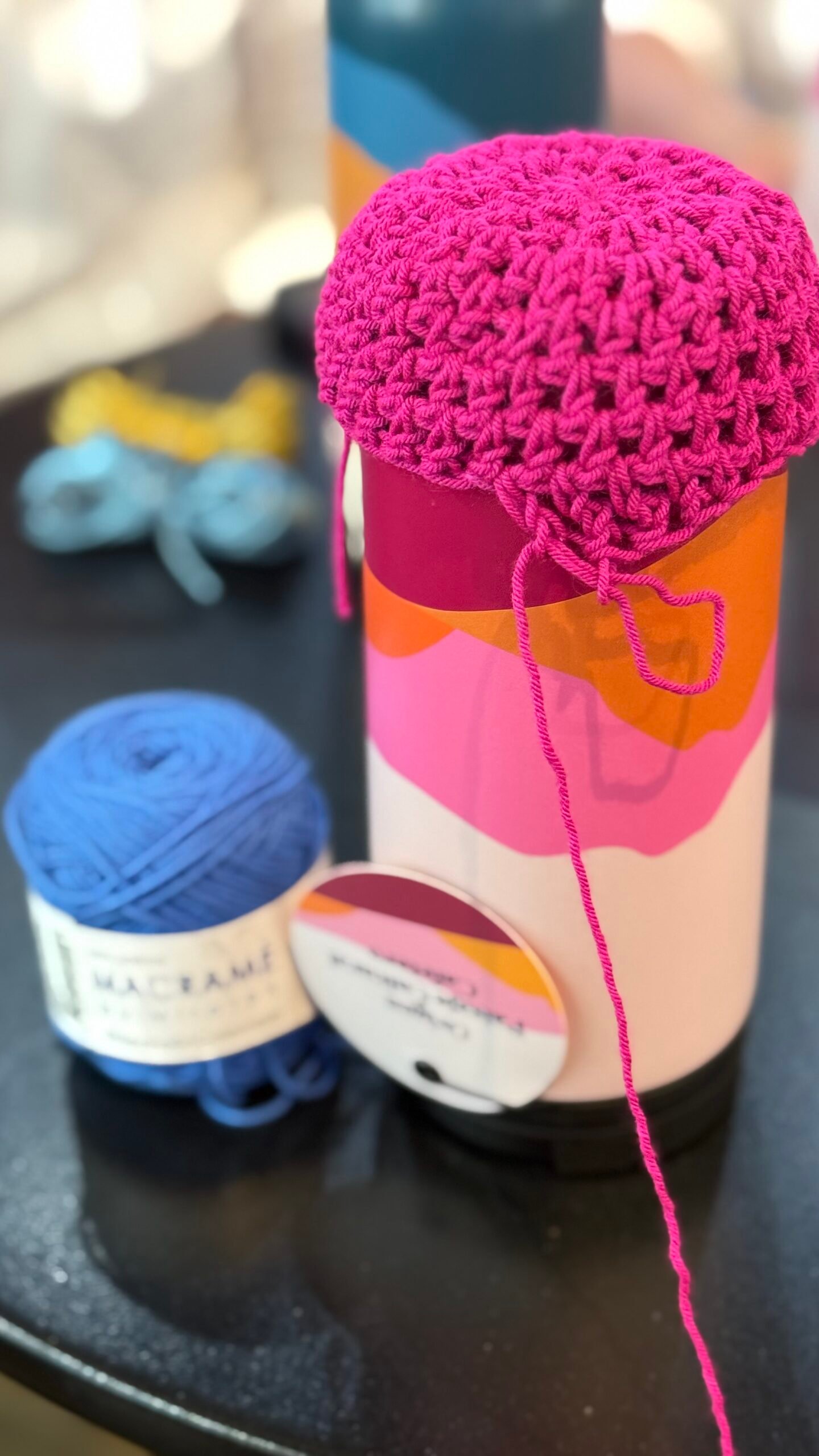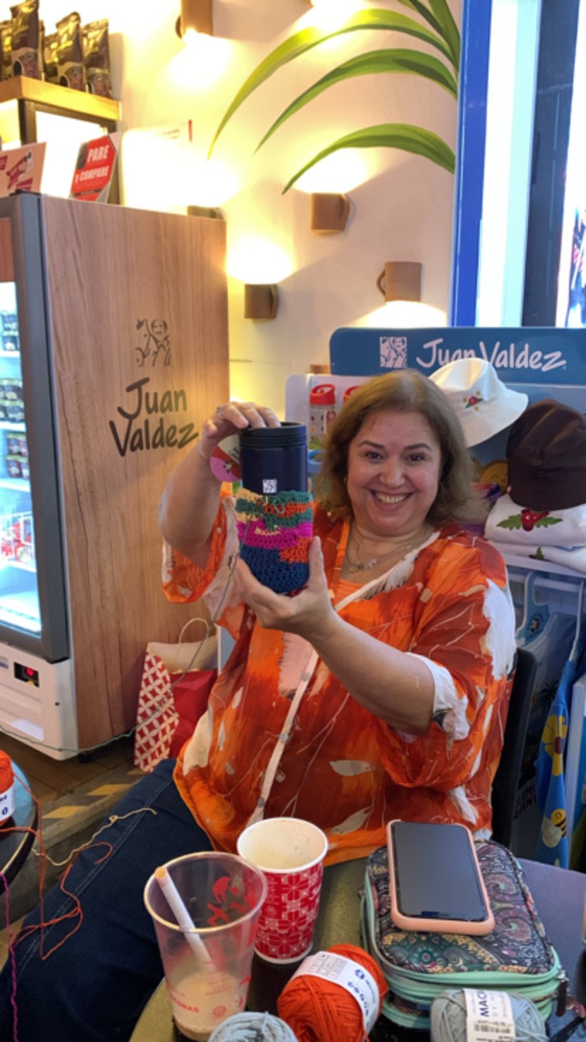 Café & Crochet Juan Valdez + Materiales + Pieza tejida (Porta termo)